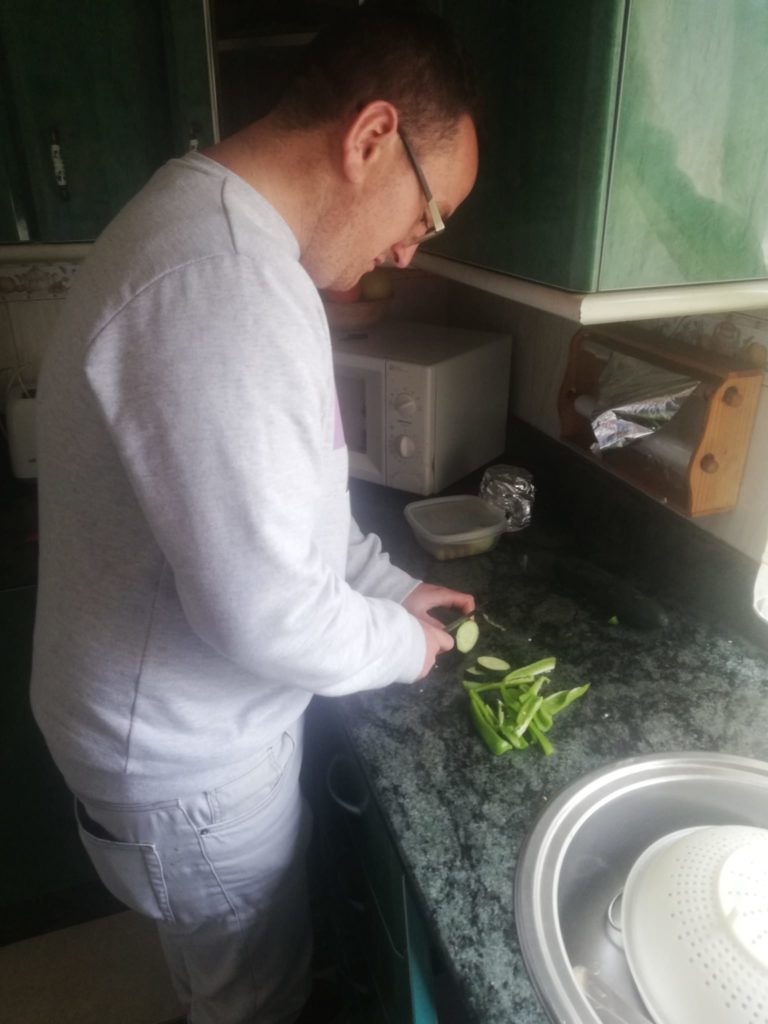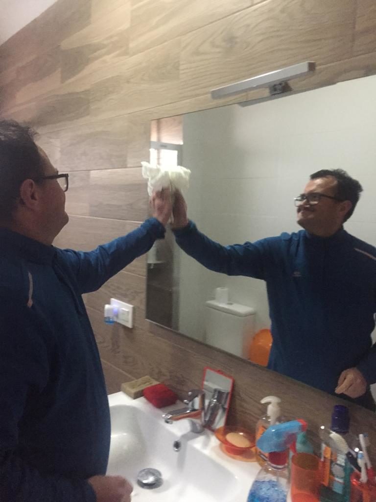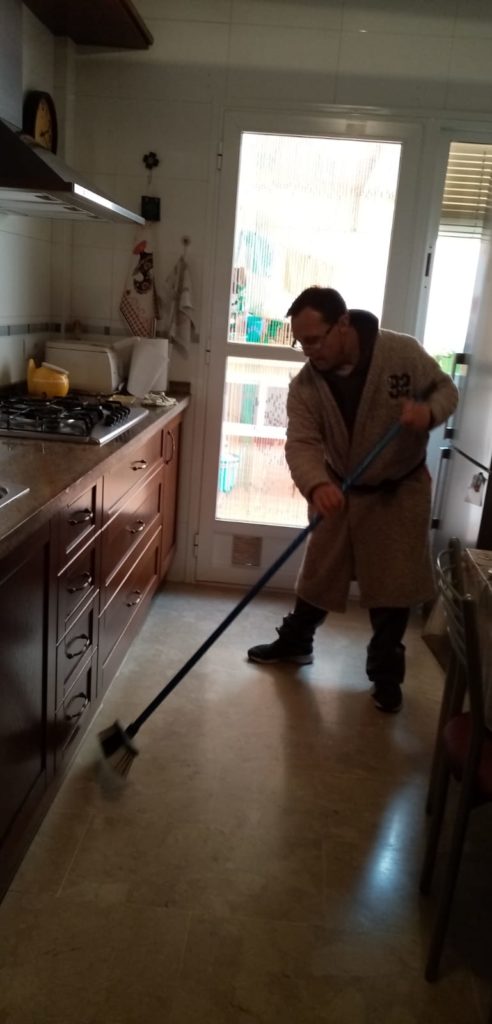 Y nuestros usuarios, ¿Qué hacen? Pues para no perder la rutina establecida y que la cuarentena sea más llevadera SIN SALIR SE CASA, continúan con sus actividades deportivas, colaboración en tareas de casa, estimulación cognitiva, etc, dando un claro ejemplo de responsabilidad y solidaridad.