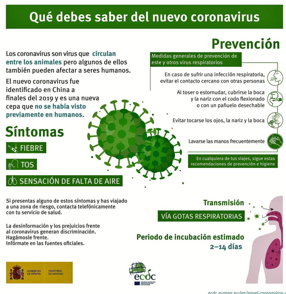 En un ejercicio de responsabilidad social, os recordamos seguir las indicaciones dadas por las autoridades sanitarias y diferentes administraciones para detener la propagación de este virus que ha creado una situación sin precedentes.