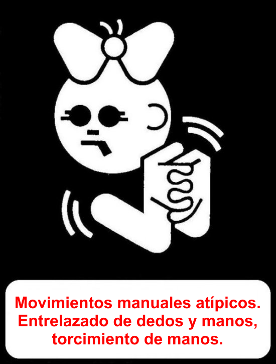 Rápidamente, se hacen evidentes una alteración de los movimientos estereotipados de las manos, como lavarse las manos, también hay una alteraciones de las facultades motoras, y una desaceleración de la tasa normal del crecimiento de la cabeza. Otros problemas pueden incluir convulsiones y patrones desorganizados de respiración mientras se está despierto. En los primeros años, puede haber un período de incomunicación cuando está irritable o llora desconsoladamente. Con el tiempo, los problemas de facultad motora puede aumentar,pero en general, la irritabilidad, el contacto visual y la comunicación mejoran.